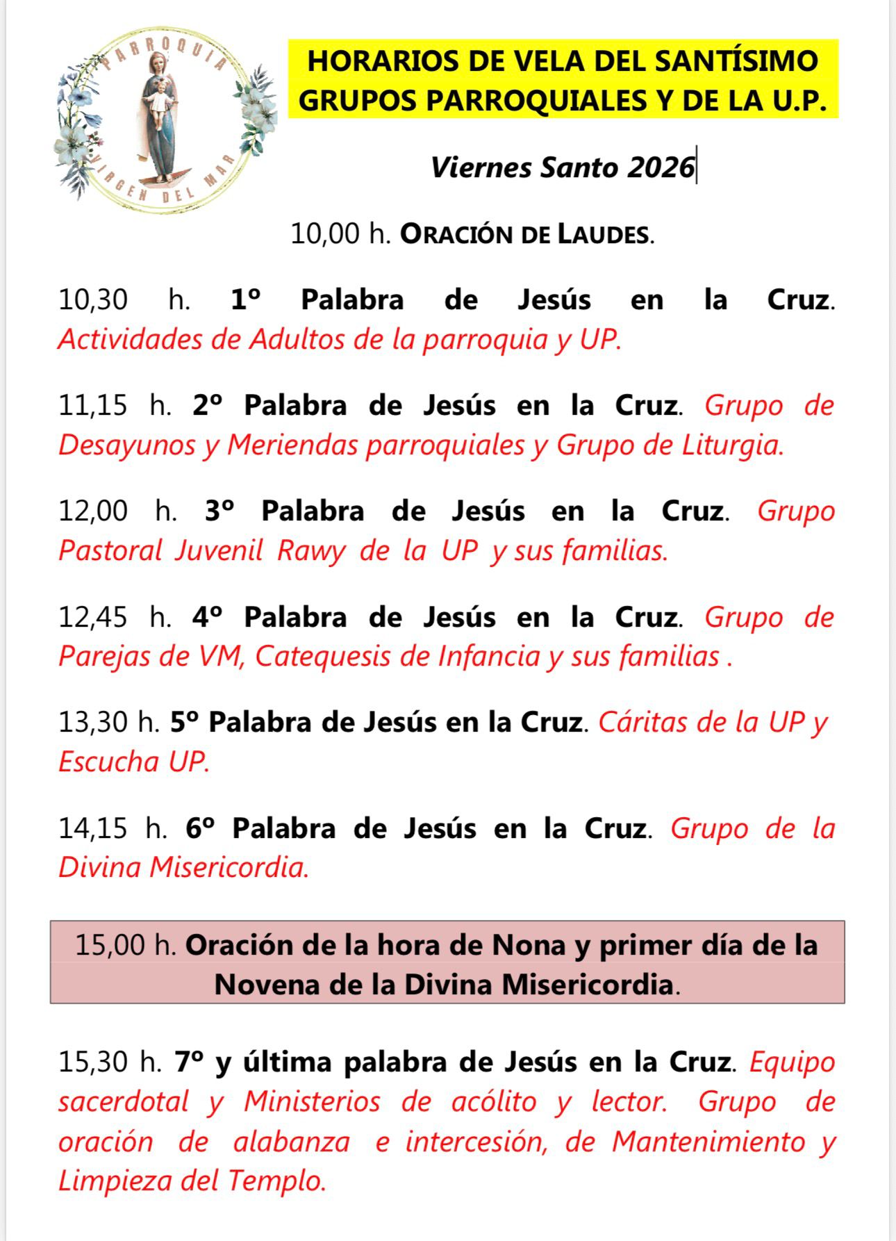 Programación de Semana Santa en Virgen del Mar.